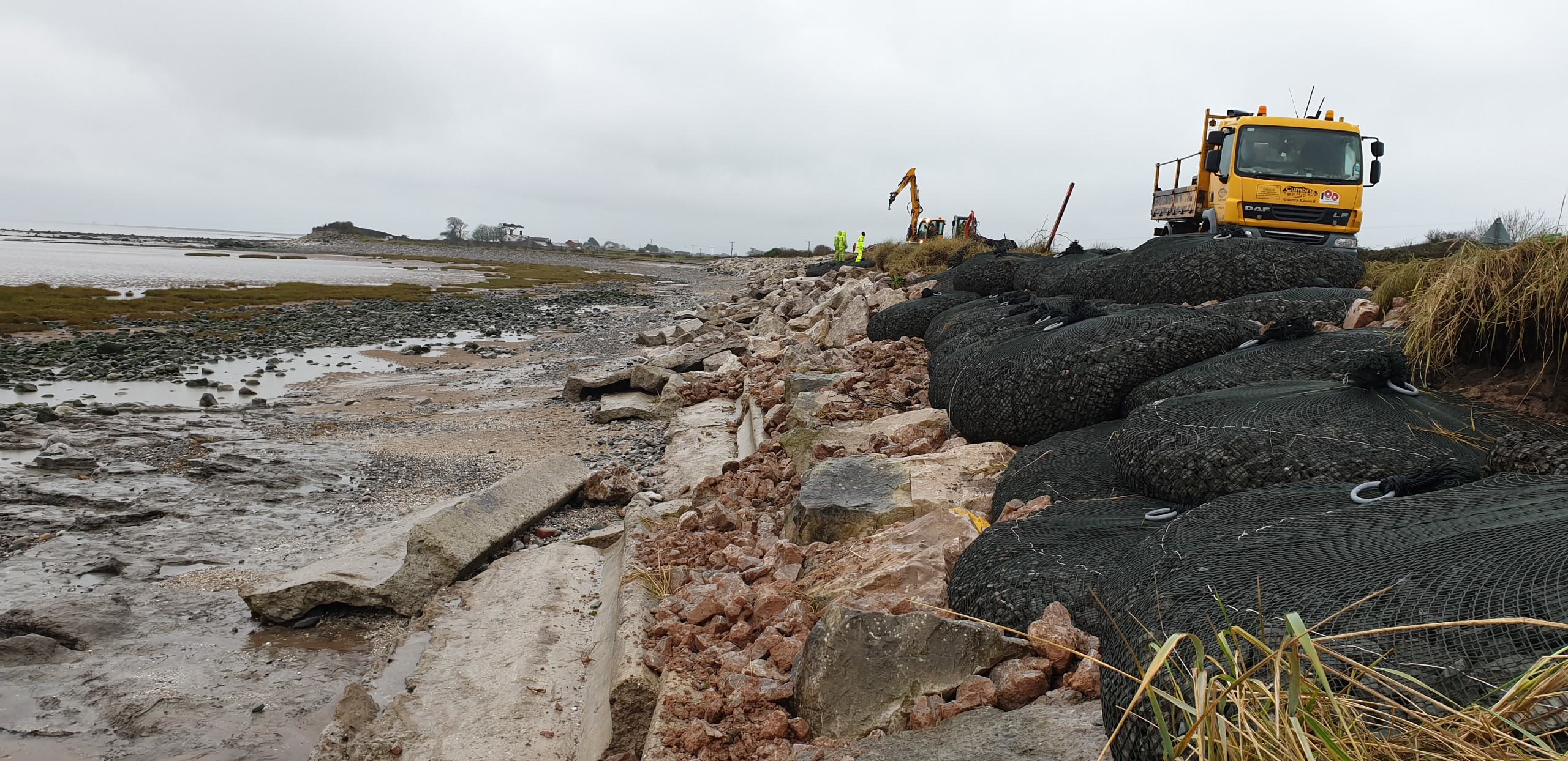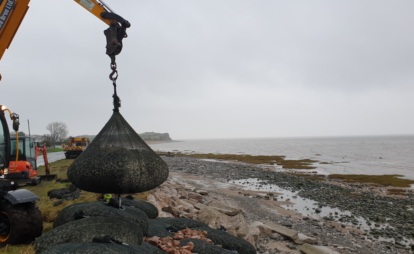 As we were moving into winter we needed a quick and effective solution to act as a new armoured sea defence, but predominately fill these existing large voids to protect the verge and any further damage.