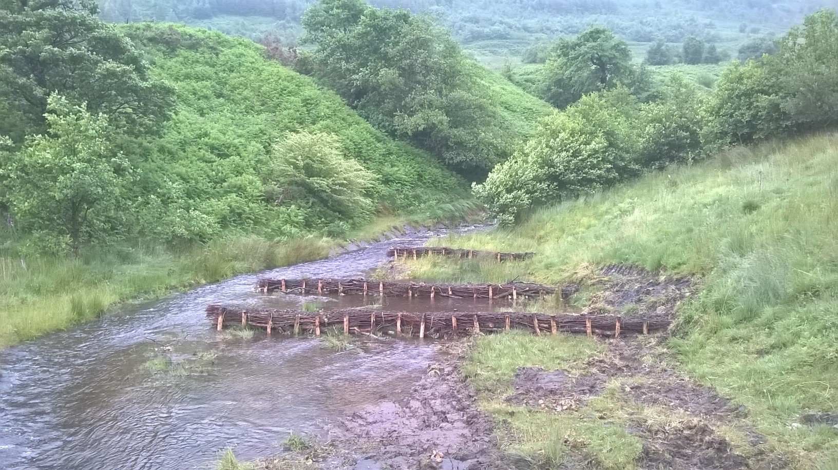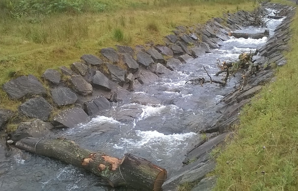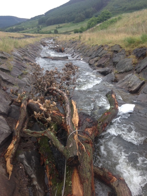 By securely pinning large sections of woody debris in the watercourse to create dams, the flow becomes more like that of a natural river or stream, with pools and eddies developing, areas of sediment building up and variances in flow rates within the channel.