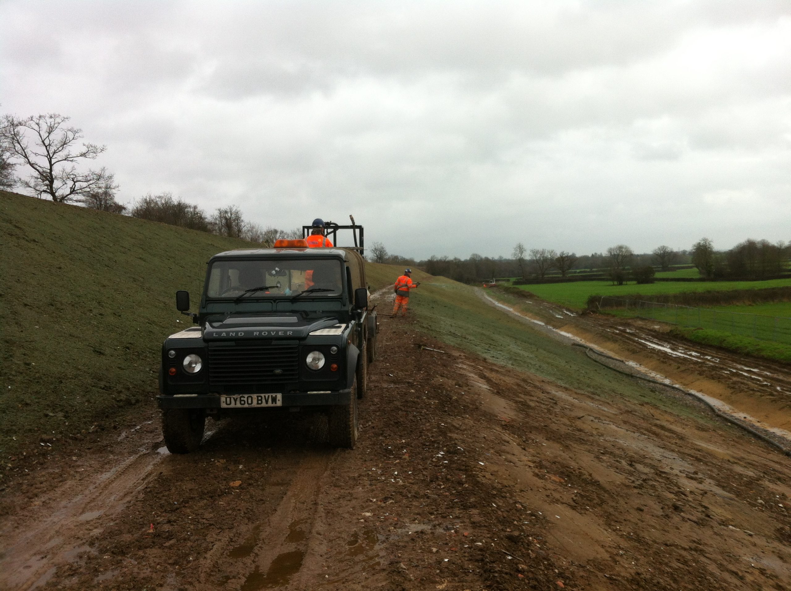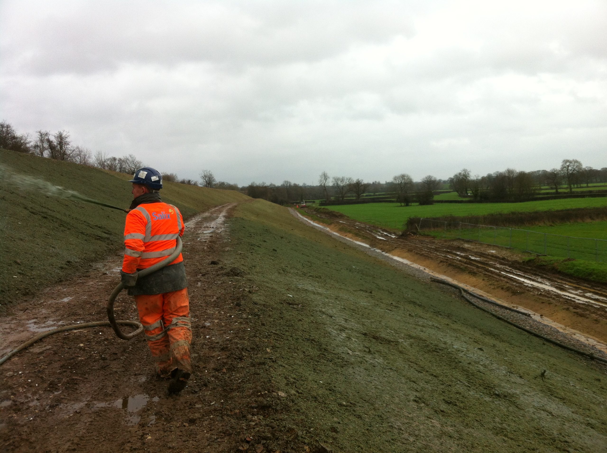 All the topsoil at this railway embankment had been completely stripped as a part of the works.