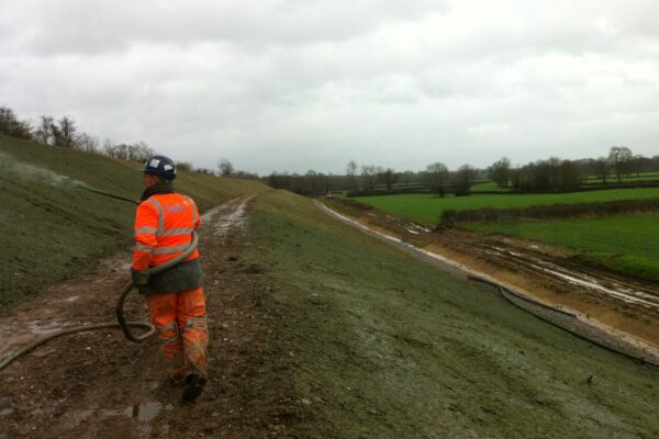 We used our HydraCX hydraulically applied erosion control blanket as it is particularly suited for this kind of work. It achieves rapid germination even when there is no top soil, as in this instance.