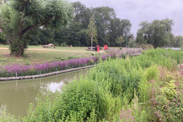 Salix contract grew the pre-established Coir Pallets for the project. Different species mixes were used around the edge of the pond, including a monoculture of purple loosestrife lythrum salicaria and a mix of other native species.