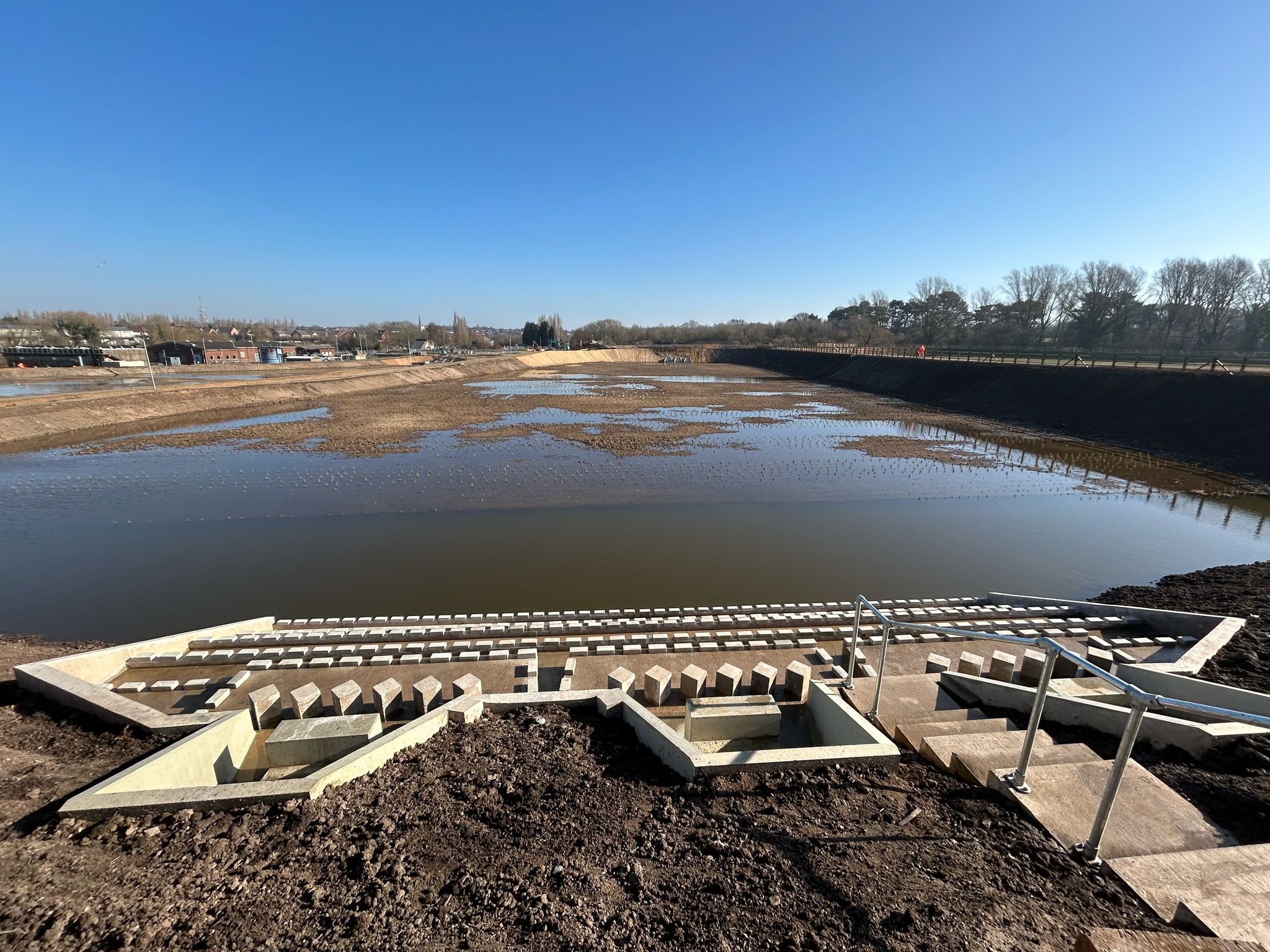 The project was to take a circa 45,000m2 made ground area on an existing sewage treatment works and to create 4 No. of wetland stormwater cells. Each cell has 3 No. of pre-cast concrete headwalls at both the inflow and outflow ends of the cells.