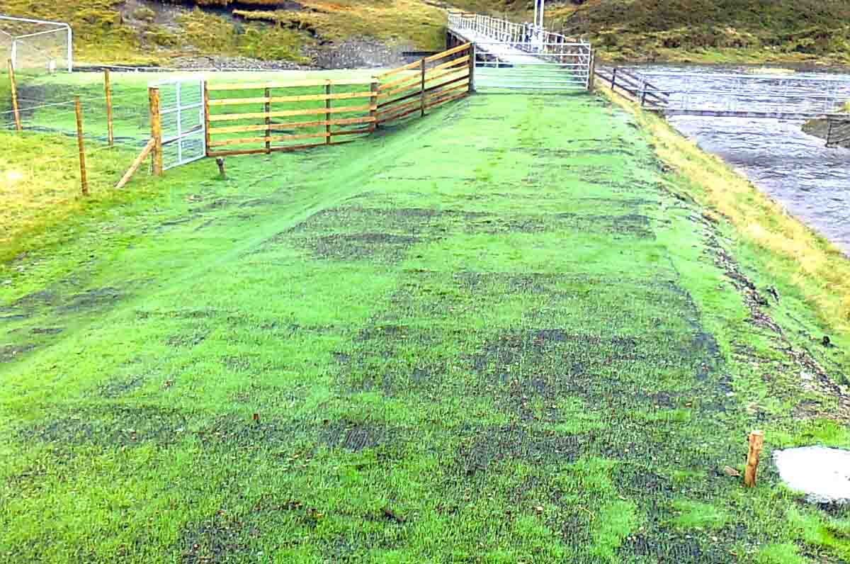 At Loch Garry we used our VMax P550 which is an easy to install, reinforced 3D geotextile grid that vegetates quickly whilst that important 3D structure protects the underlying soil and delicate root and stem systems.