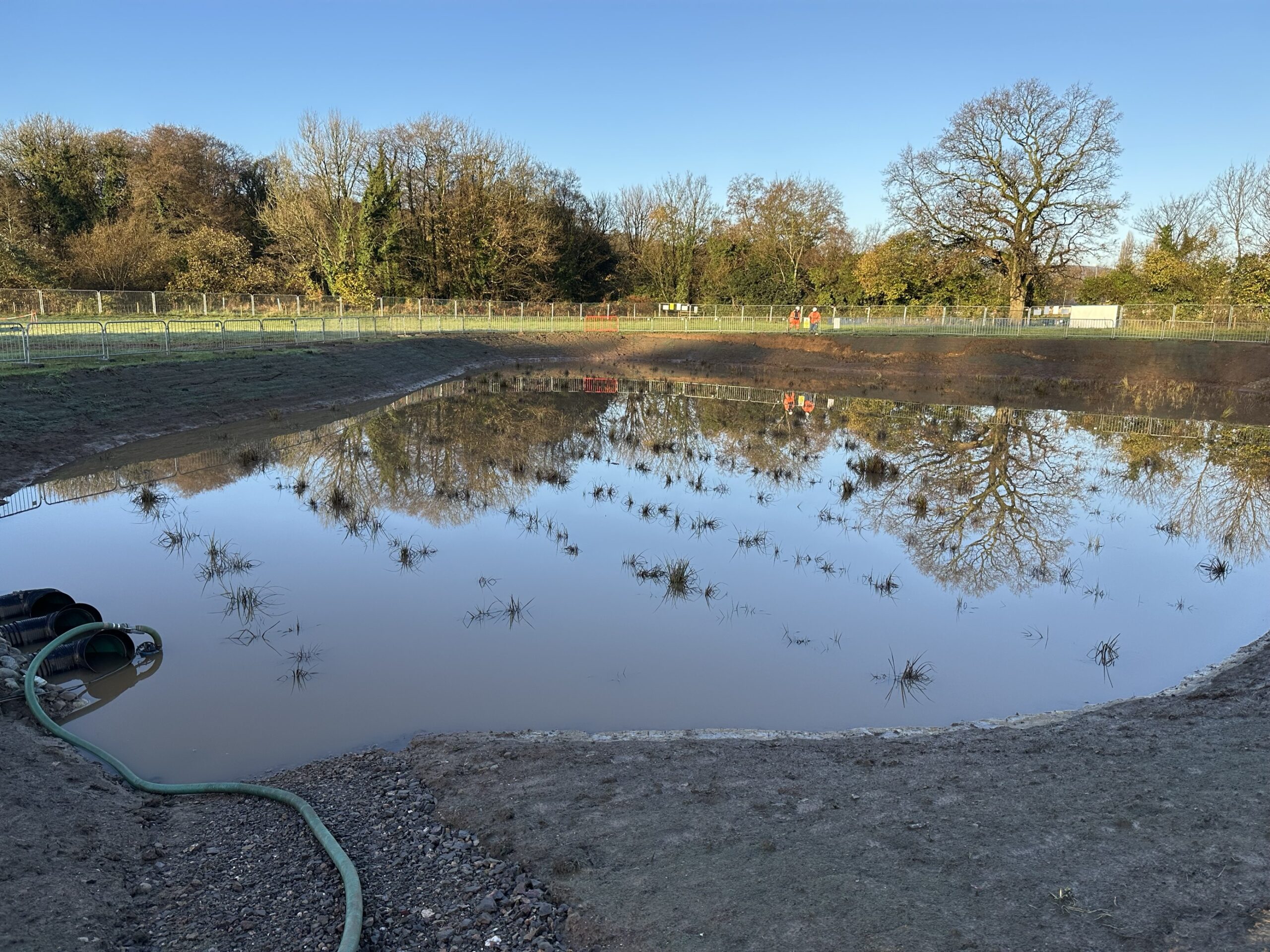 Although natural in appearance, the wetland was precisely engineered. Adjustable outlet structures, stoplogs and water level monitoring points allow operational control and ensure hydraulic performance is maintained under variable storm conditions. During works water levels were carefully staged to support vegetation establishment before reaching full operational depth.