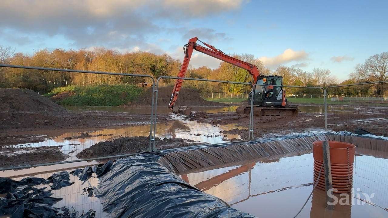 Salix was responsible for constructing the wetland cells and all associated hydraulic infrastructure, including inlets, interconnecting pipework, headwalls, outlet structures and access provisions. Earthworks were undertaken to create carefully profiled shallow basins designed to optimise retention time and hydraulic efficiency.