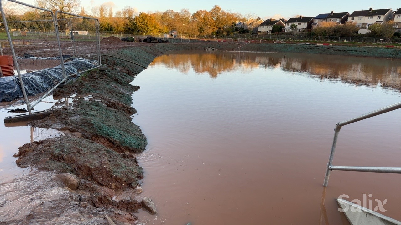 Construction coincided with one of the most severe storm and flooding events to impact South Wales at the time. During peak conditions, both treatment cells flooded to depths of approximately one metre before works were complete.