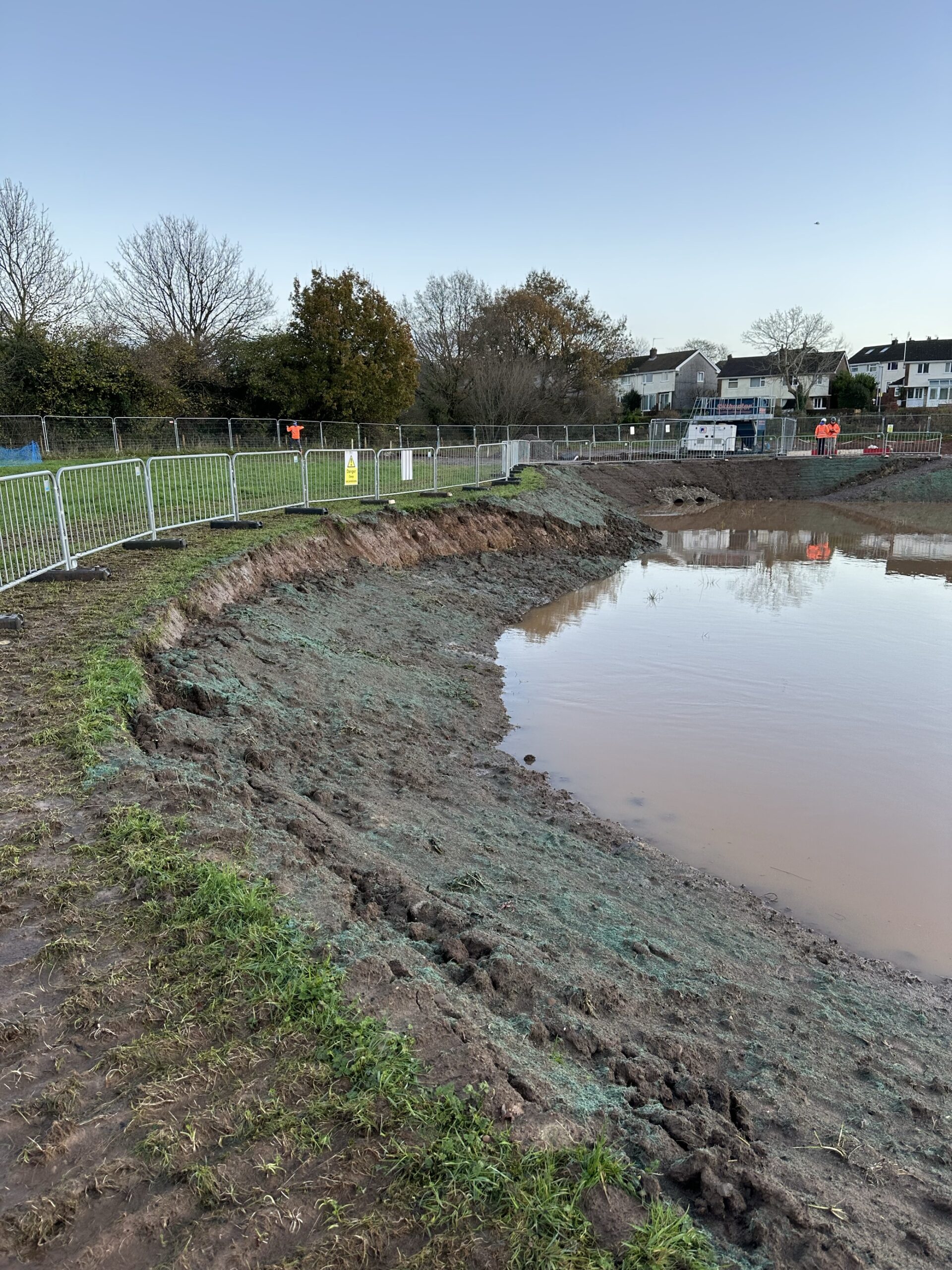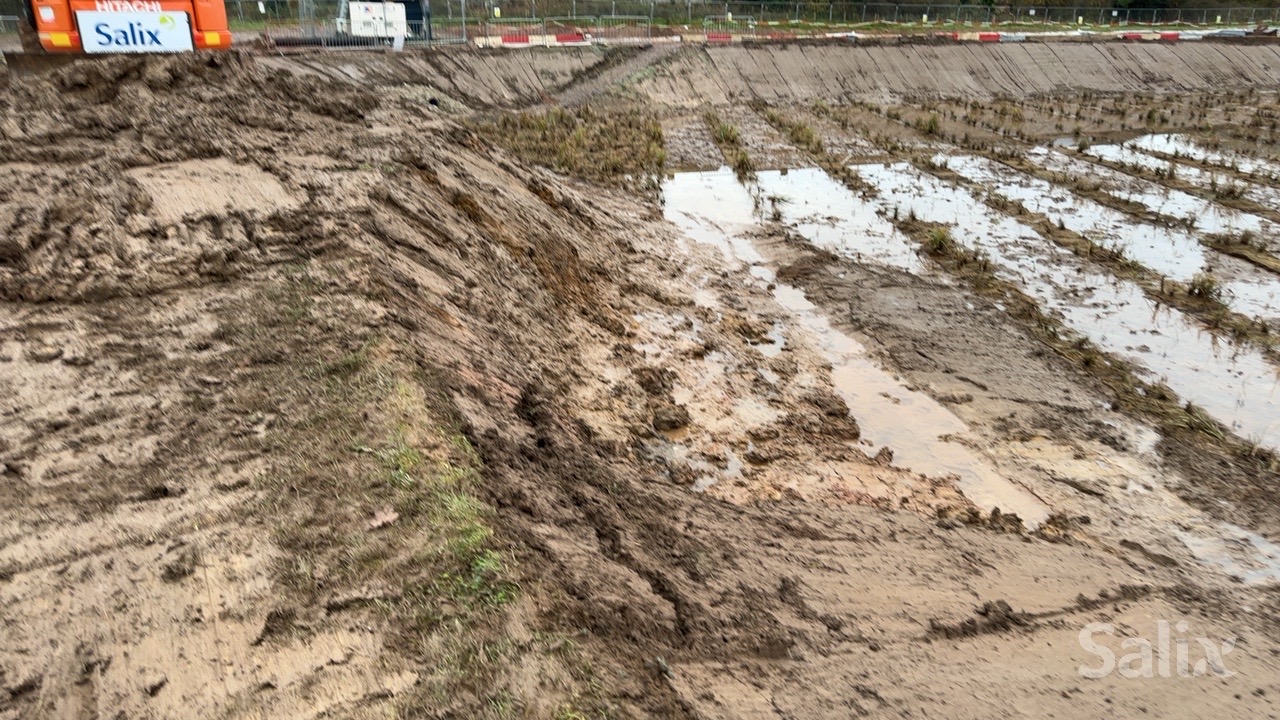 Significant pumping operations were required to dewater the site, with 2.5 days spent removing floodwater from the newly formed cells. The event caused damage to embankments and washed topsoil into the treatment areas, requiring regrading, sediment removal and reinstatement of formation levels.#