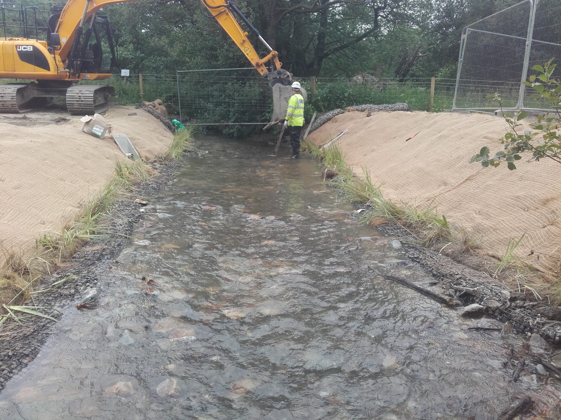 Salix’s Rock Rolls, erosion control coir matting and pre-planted Coir Rolls were used to ensure the riverbanks were protected from erosion.