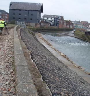The integrity of the existing blockwork facing was deteriorating as a result of the tidal inundation and draw-down cycles together with areas of groundwater seepages emanating from the slope profile.