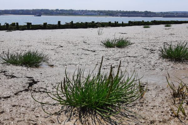 Sea club rush, sea arrowgrass and sea aster are establishing within the restored saltmarsh area. This creates habitat for invertebrates and nursery refuge for small fish during high tide.