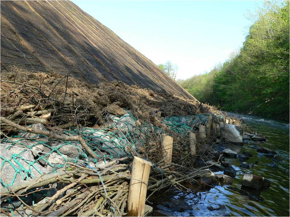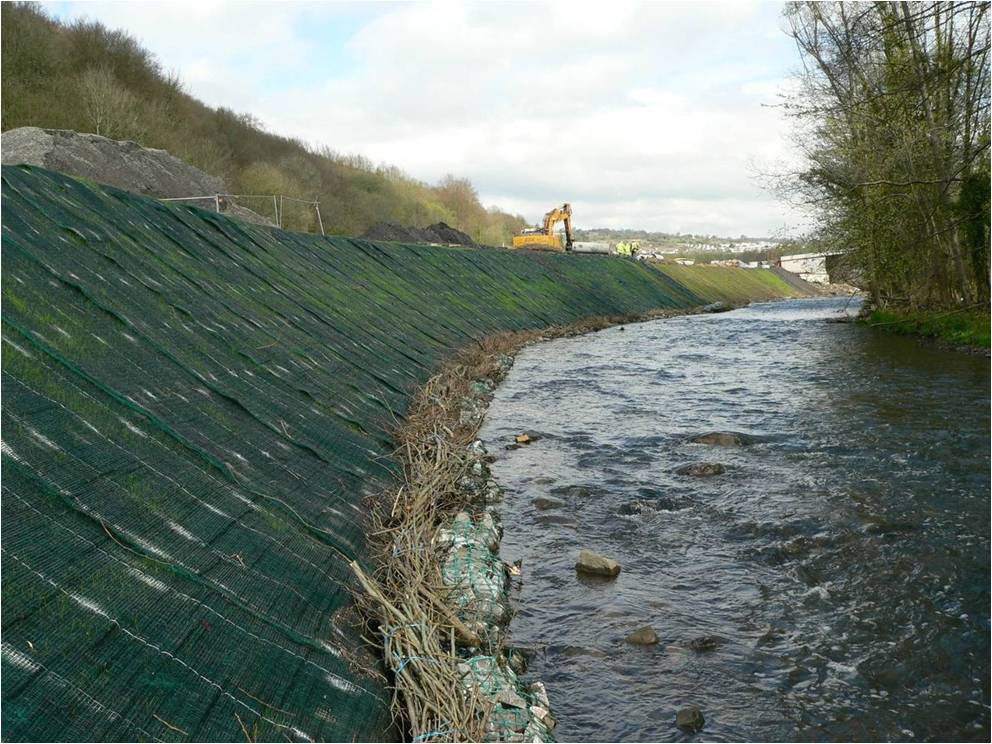Salix worked with consulting geotechnical engineers to provide design and build proposals to stabilise over 800 metres of steep riverbank composed of highly erodible colliery shale. Initial proposals looked at the extensive use of large blockstone to stabilise the bank.