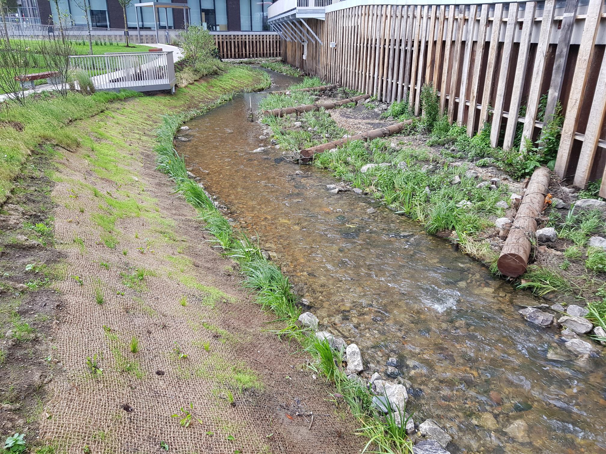 Since installation, vegetation has established well to provide excellent habitat. The area provides a vital refuge for wildlife as the watercourse is culverted both upstream and downstream.