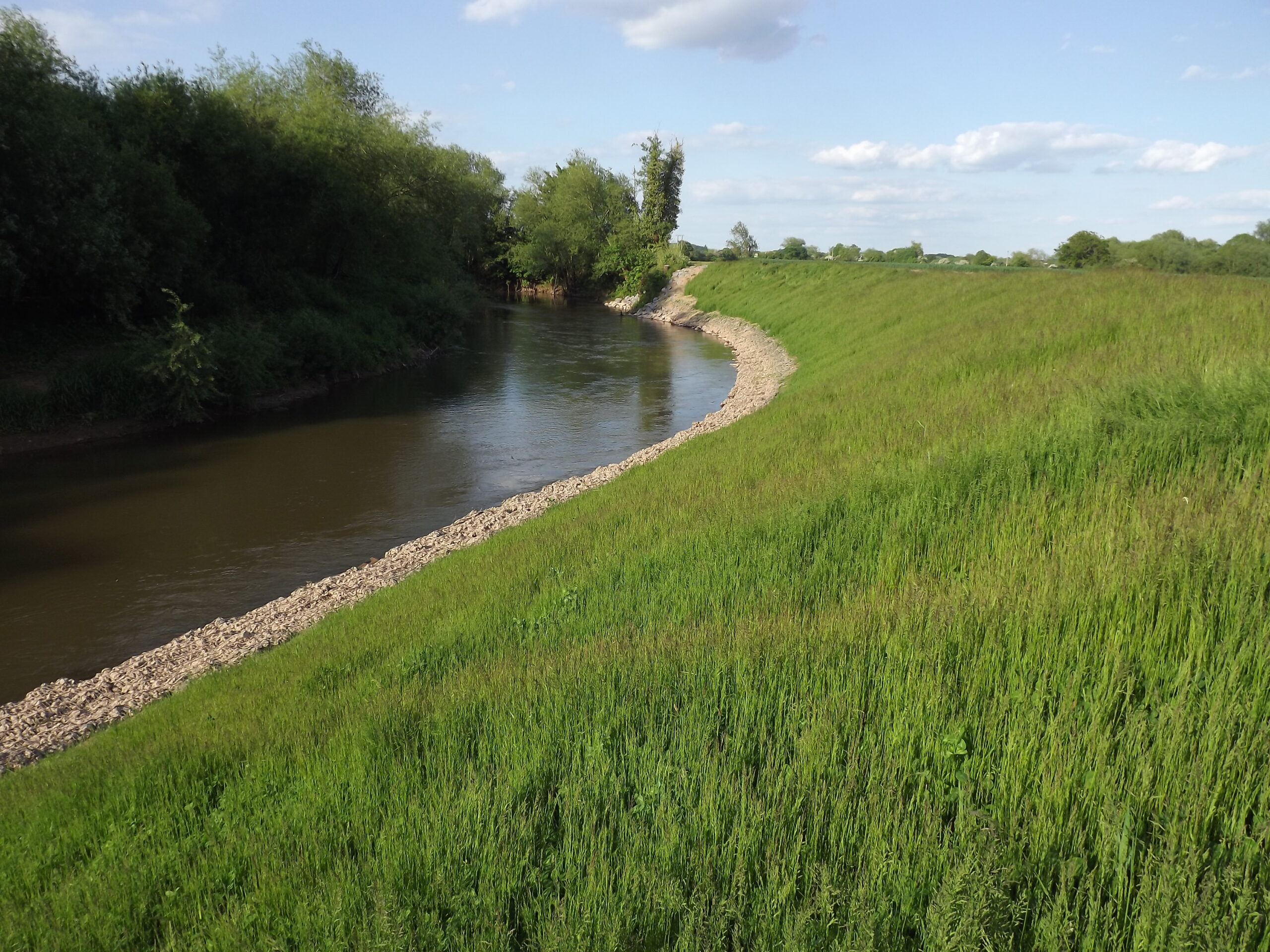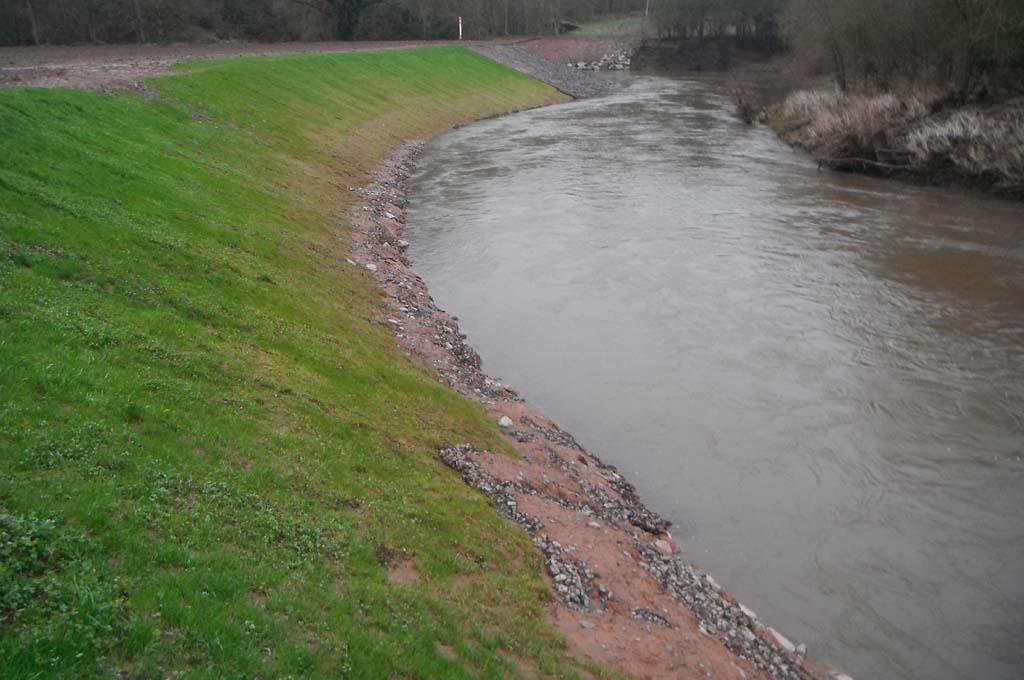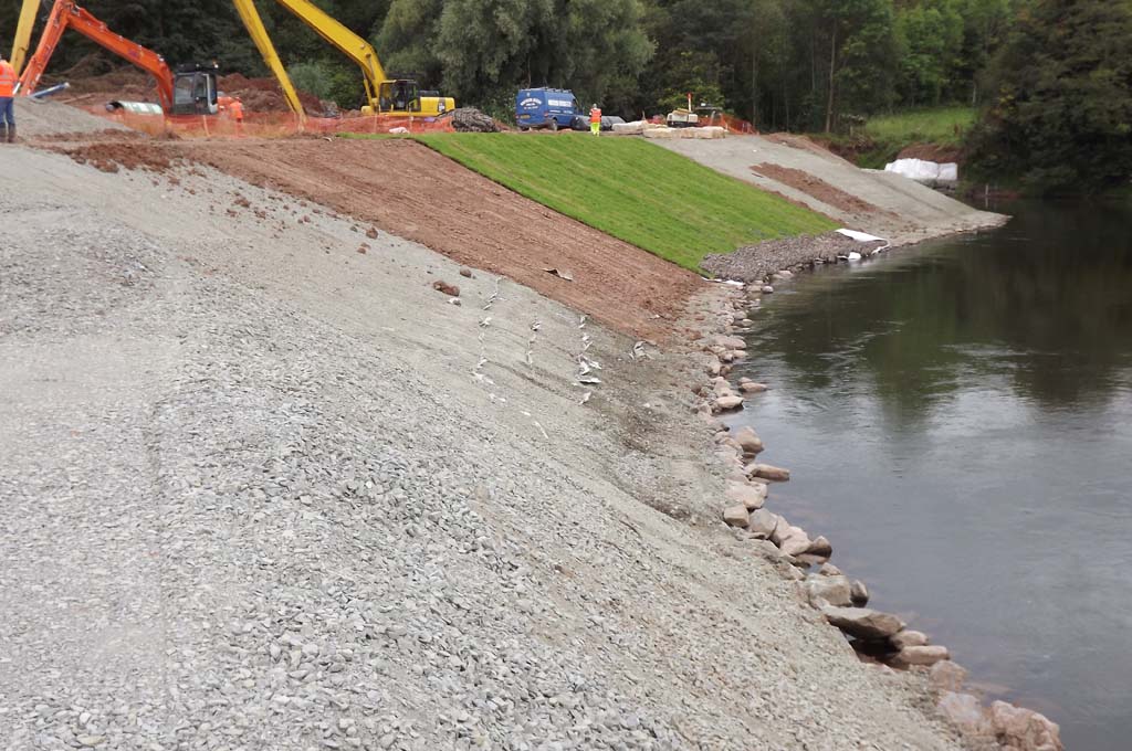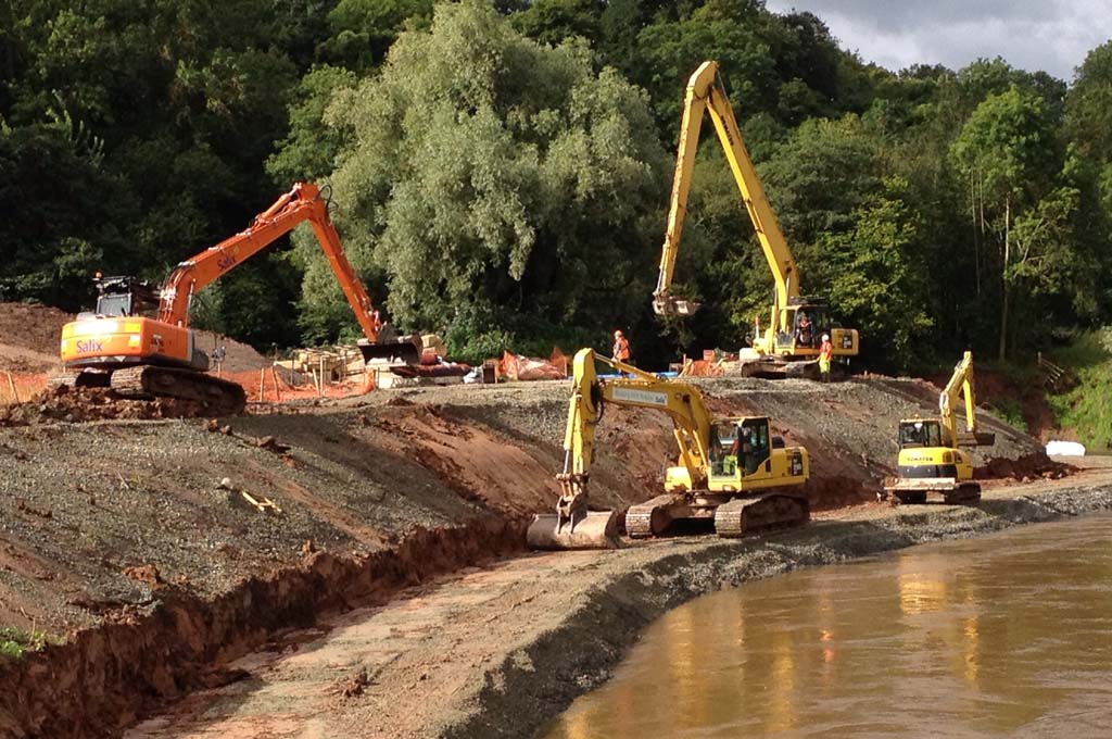 The River Teme is a sensitive SSSI and SAC river and over 150 metres of severe bank erosion was threatening a National Grid pipeline. Salix lead the design and build solution with a hybrid bank protection solution. The toe was stabilised with a site specifically graded rip rap below water and then extensive soft/bioengineering works above. The project costs were approximately £1.2m and represent the largest riverbank repair works ever undertaken by National Grid. Salix’s Design & Build contract formed the majority of the works and was valued at £740,000. Innovative working methods includes a submerged blockstone causeway that permitted fish movement and allowed access to the opposite bank to work.