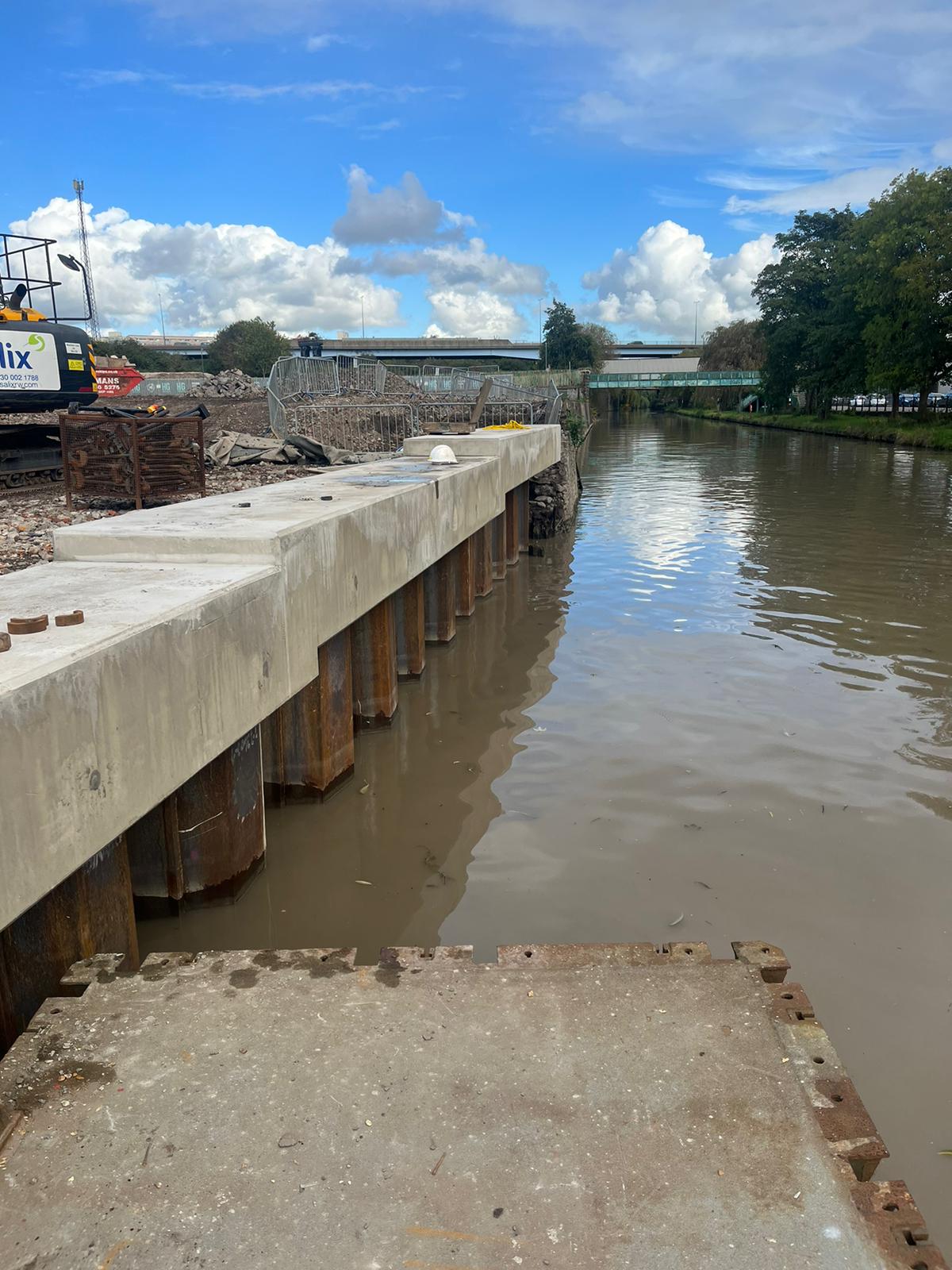 Salix was commissioned to undertake the design and build for a sheet piled wall with a reinforced concrete capping beam. This was to replace a failed section of timber wall at the Silverthorne Lane, Bristol remediation Project.