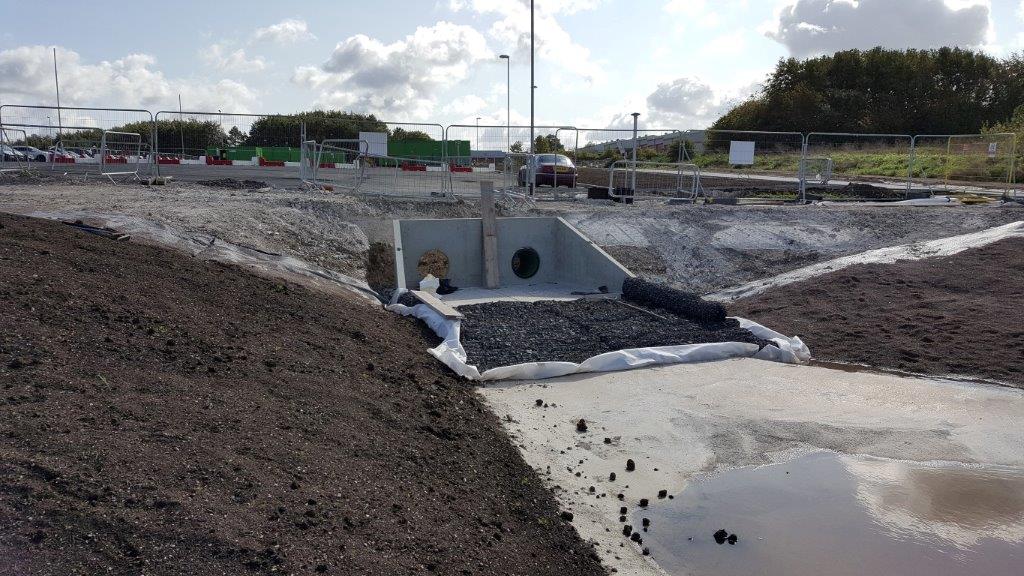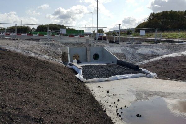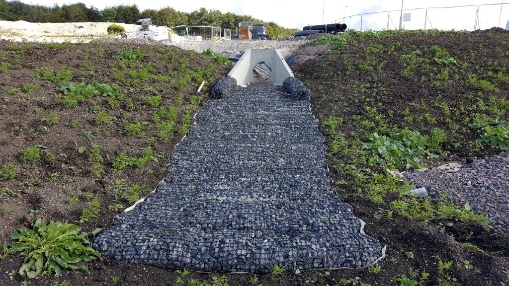 As a part of the scour and erosion control measures it was necessary to take large volumes of run off water from newly constructed hard standing areas.