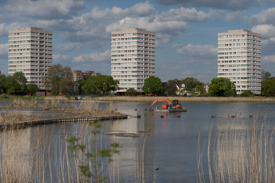 Desilting a large reservoir in the heart of London and creating a new wetland habitat. Dredging silts enabled us to create 13,000 square metres of new reed bed. Silting up of Thames Water’s East Reservoir in Stoke Newington had resulted in algal blooms and a problem for London Wildlife Trust who manage the site.