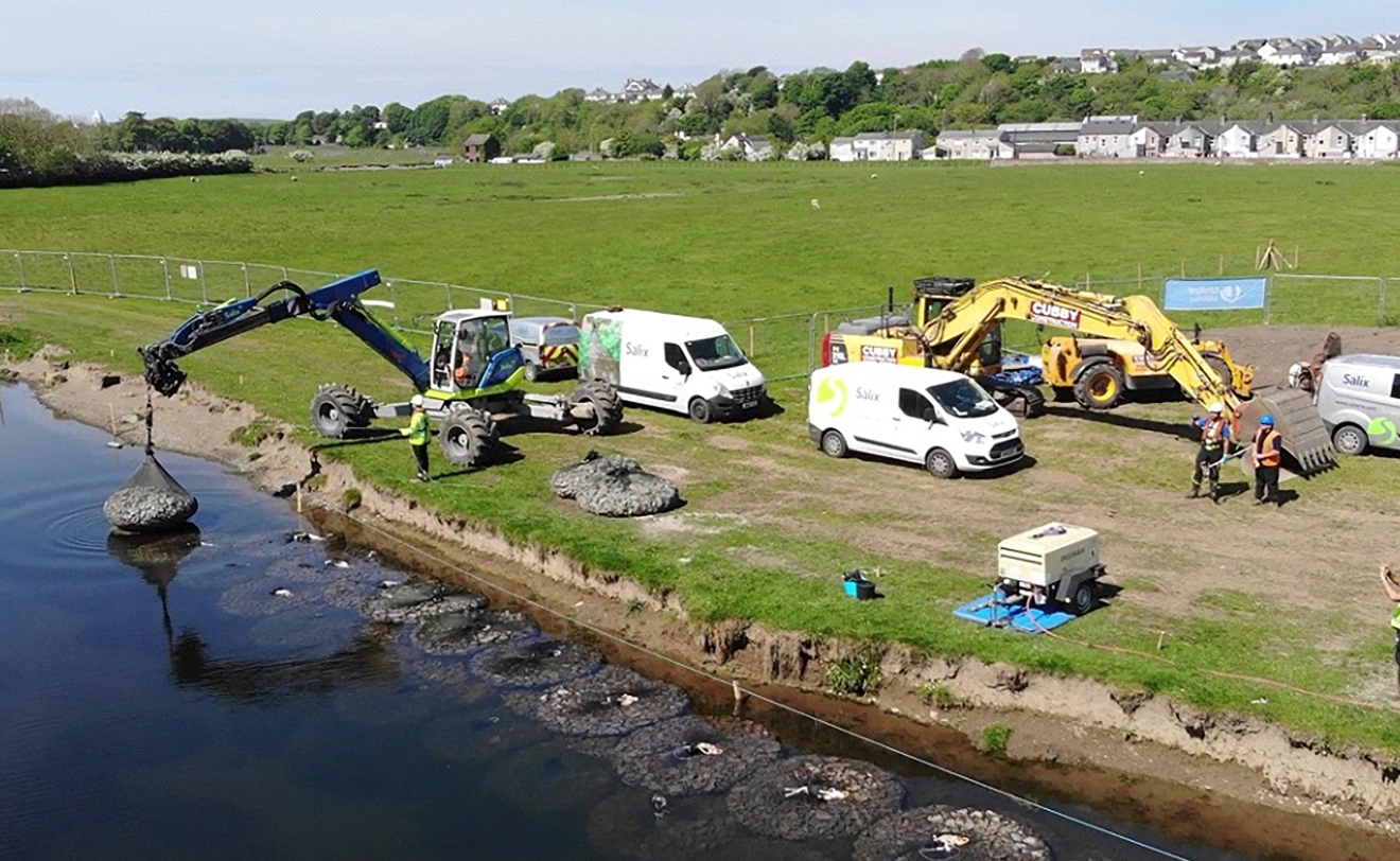 See the installation of Salix’s AquaRockBags and Root Wads on Yearl Weir.