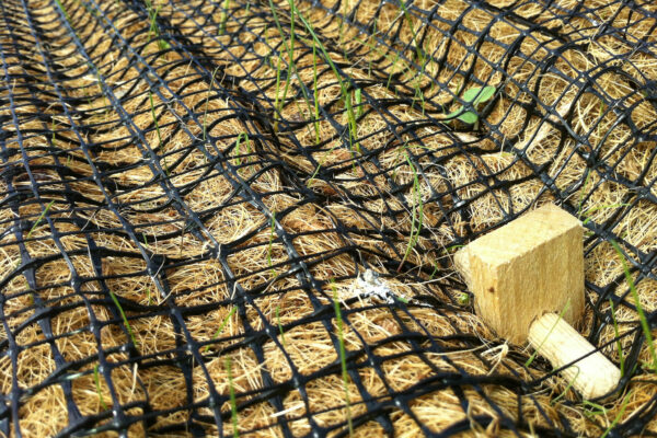 A high tensile strength, 22mm deep high strength 3D skeleton Geomat with additional benefit of a coir fibre composite layer.