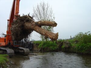 We have experience of using whole willow tree roots (Root Wads) to function as a both a living revetment and as woody debris. We can advise on the riverbank stability and ecological gain of such techniques.
